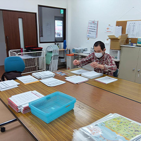 第 1 テイクは定員 40 名、幅広い年齢層の利用者さんが 1,2 階のフロアに分かれて過ごされています。 第 1 テイクの特徴は、内職やリサイクル回収、ポスティングなど複数の作業を通して、利用者さん一人一人にあった作業への関わりを見出しながら、職員と一緒に取り組んでいます。また、作業だけでなく室内での余暇や外出活動などいろんな活動を提供して、楽しく参加していただいています。 利用者さんの自分らしさを大事に、個々のニーズや想いに対して丁寧に取り組み楽しい日中を過ごしていただけるよう職員一丸となって支援しています。